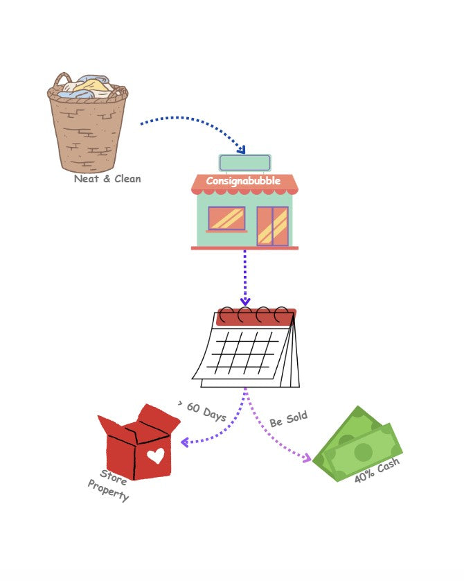 At Consign A Bubble, we make consigning easy and rewarding! You’ll earn 40% of the sale price on your items for up to 60 days, with no appointment needed—just come by when we’re open. Consigning with us is a great way to give your gently used items a second life while earning a little extra cash.